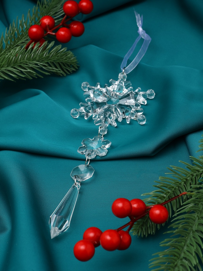 Украшение ёлочное "Льдинка" снежинка кристалл, 20х6 см, прозрачный — Характеристики