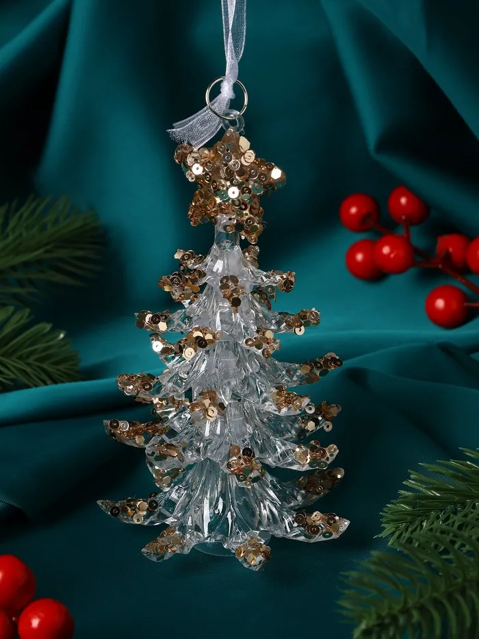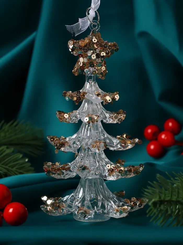 Украшение ёлочное "Праздник" ёлочка, 13х7 см, прозрачно-золотой