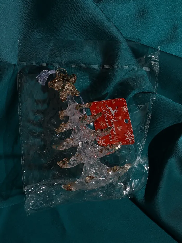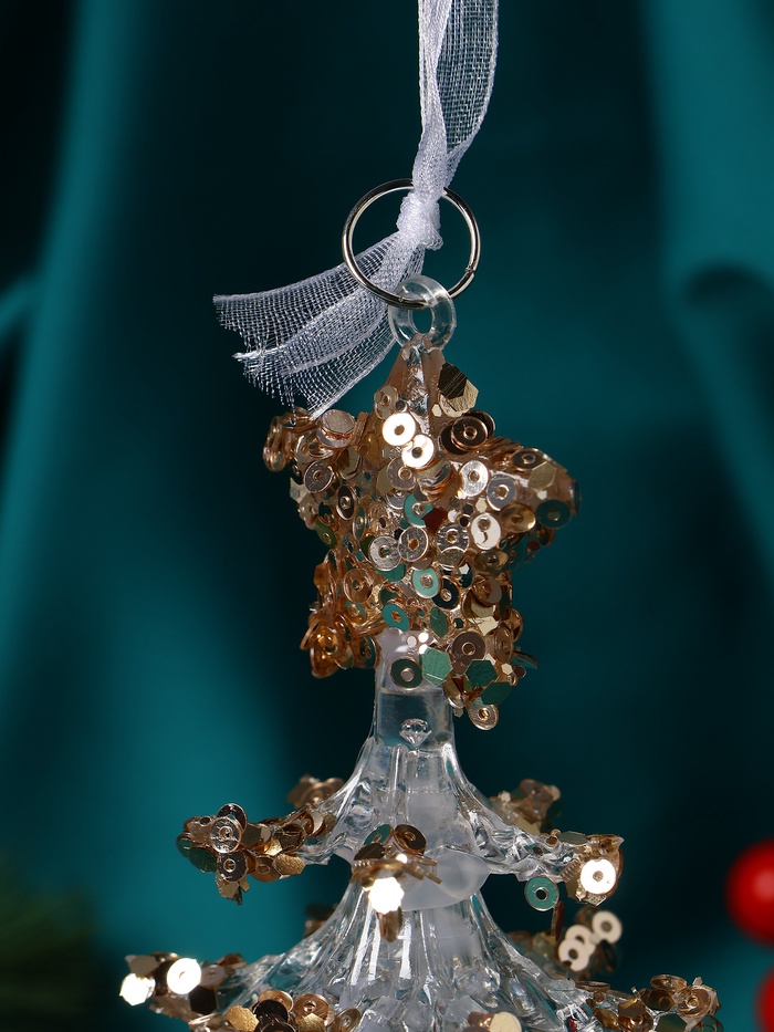 Украшение ёлочное "Праздник" ёлочка, 13х7 см, прозрачно-золотой — Характеристики