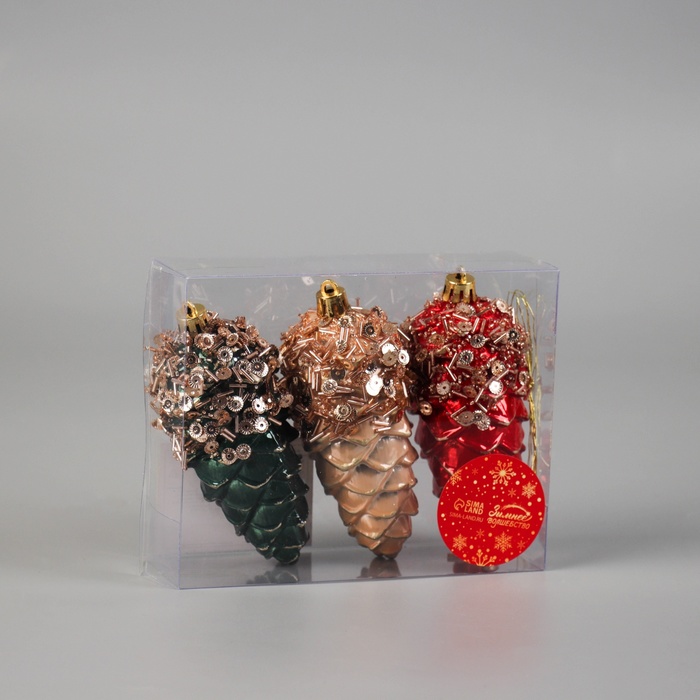 Украшение ёлочное "Шишка Коул" (набор 3 шт) 12х4 см, микс — Характеристики
