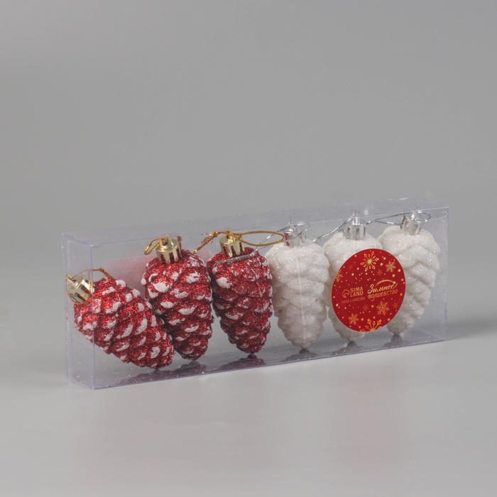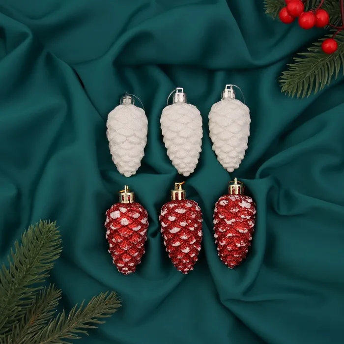 Украшение ёлочное "Шишки ассорти классик" (набор 6 шт) 7,5х3,5 см, красный белый — Характеристики