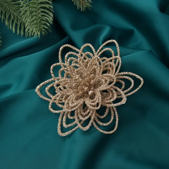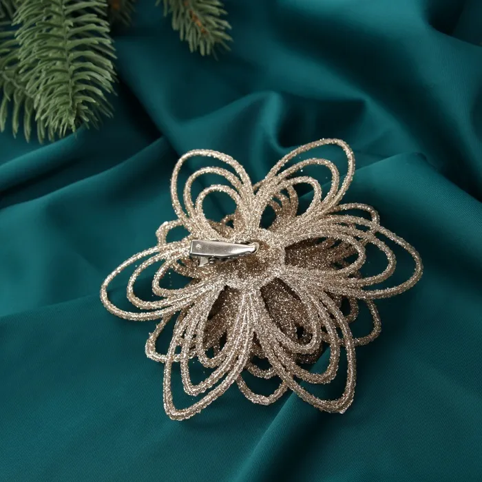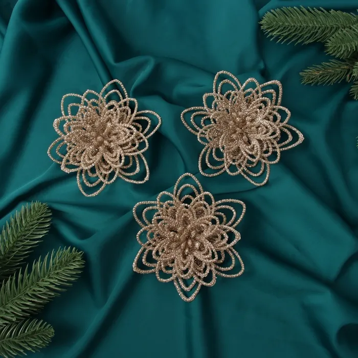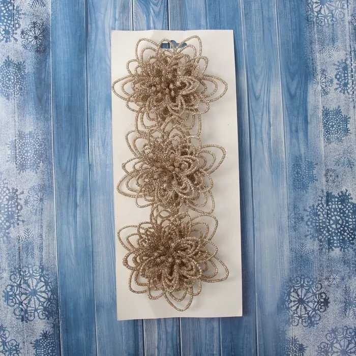 Украшение ёлочное "Цветы блеск кружева" (набор 3 шт) на зажимах, 10,5 см, золото — Характеристики