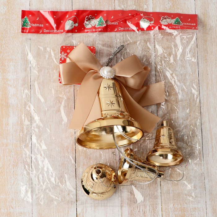 Украшение ёлочное «Зимнее волшебство. Колокольчик», новогоднее, 8×28 см, золотистое — Характеристики