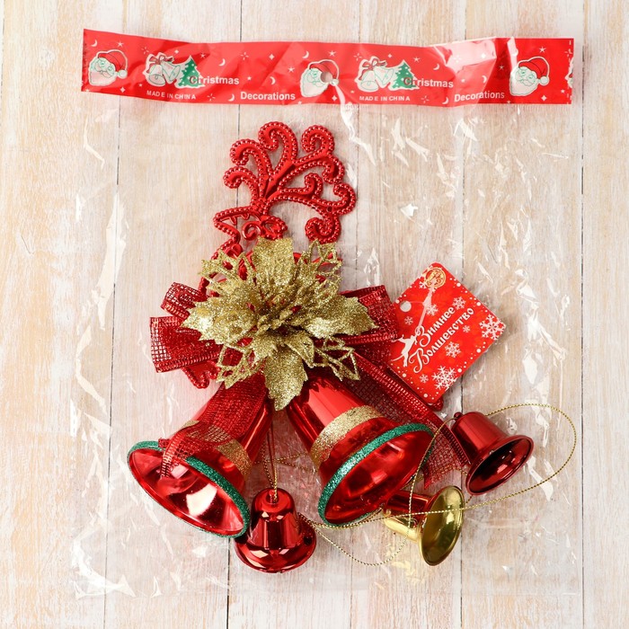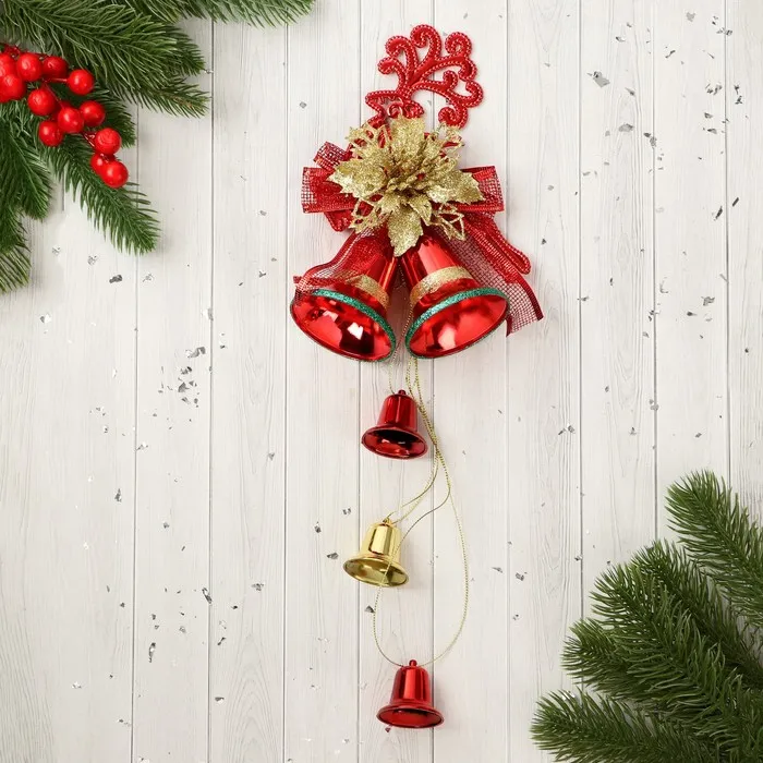 Украшение ёлочное «Зимнее волшебство. Колокольчики», новогоднее, 11×30 см, с оленем, красное — Характеристики