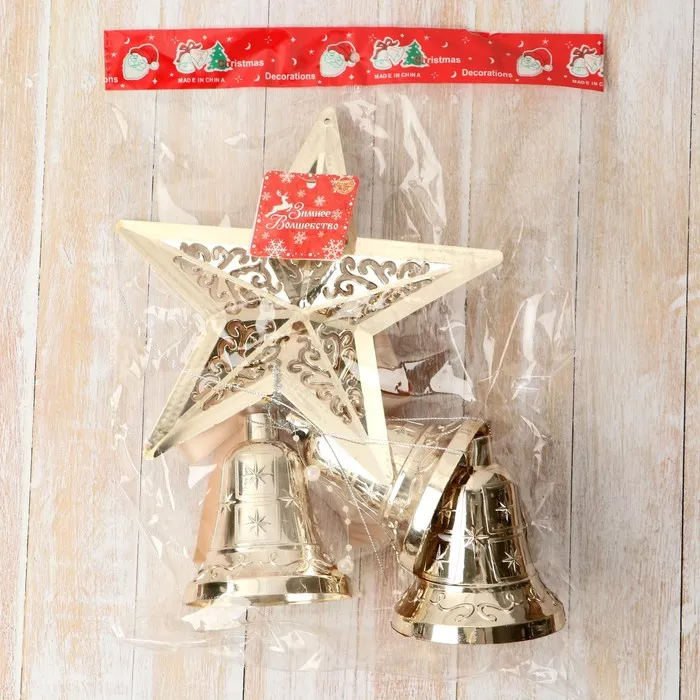 Украшение ёлочное «Зимнее волшебство. Колокольчики», новогоднее, 16×31 см, со звездой — Характеристики