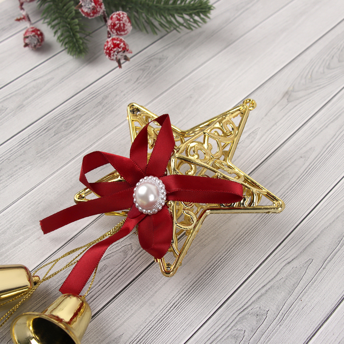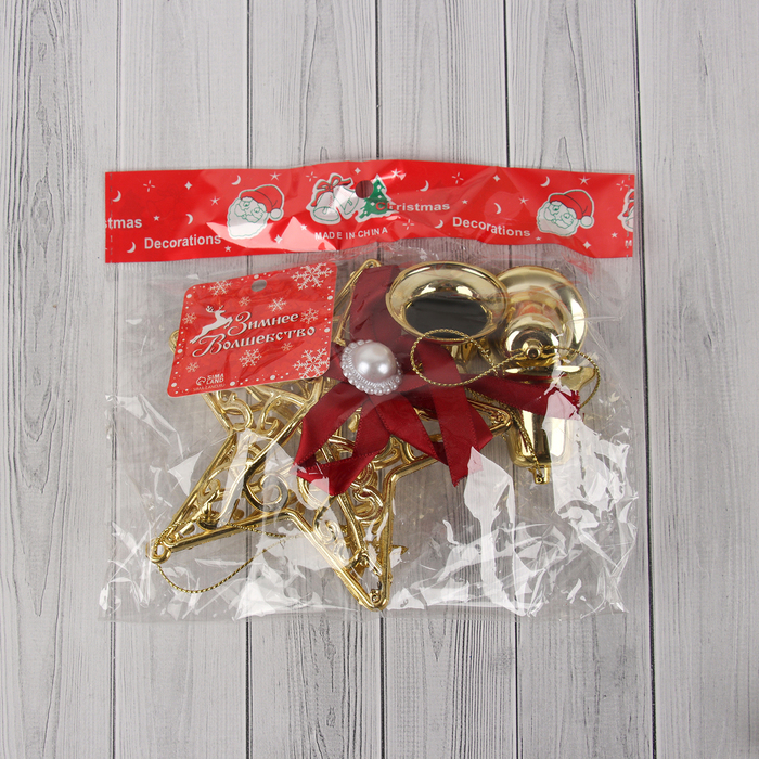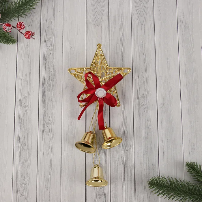Украшение ёлочное «Зимнее волшебство. Колокольчики», новогоднее, 9×22 см, со звездой, золотистое — Характеристики