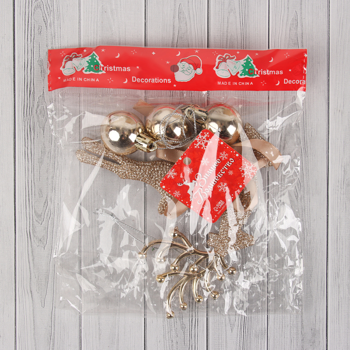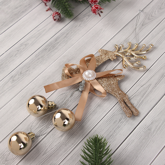 Украшение ёлочное «Зимнее волшебство. Уютная сказка», новогоднее, 11×20 см, с шариками, золотистое — Характеристики