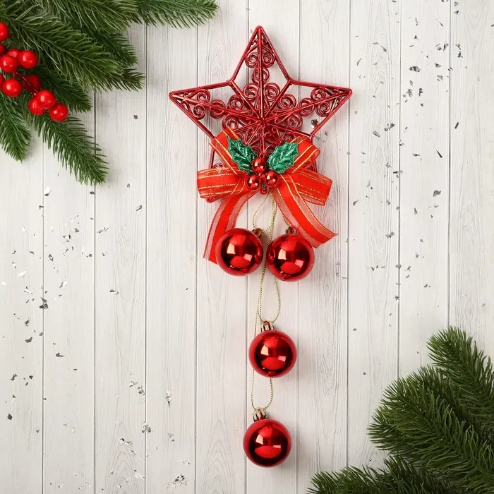 Украшение ёлочное «Зимнее волшебство. Уютная сказка», новогоднее, 12×29 см, со звездой, красное — Характеристики