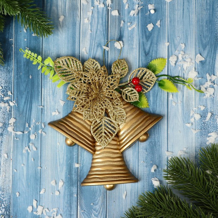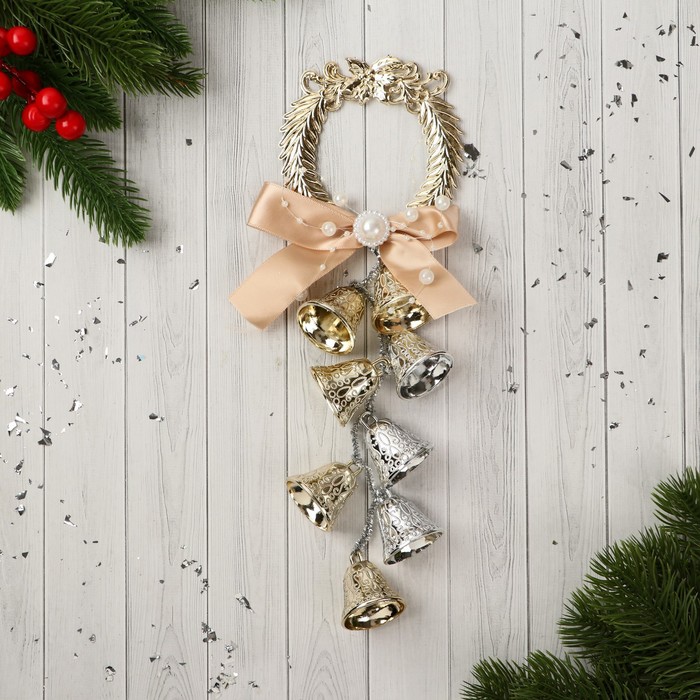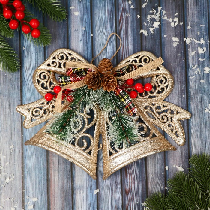 Новогоднее украшение «Колокольчики с ягодками» — это стильный и теплый акцент для праздничного декора. Изделие размером 25×18 см выполнено в форме колокольчика с элементами, напоминающими ягоды, и оформлено в золотистой гамме. Украшение подходит как для ёлки, так и для интерьера, сочетая в себе черты ар-деко, классики, новогоднего барокко и шебби-шик.