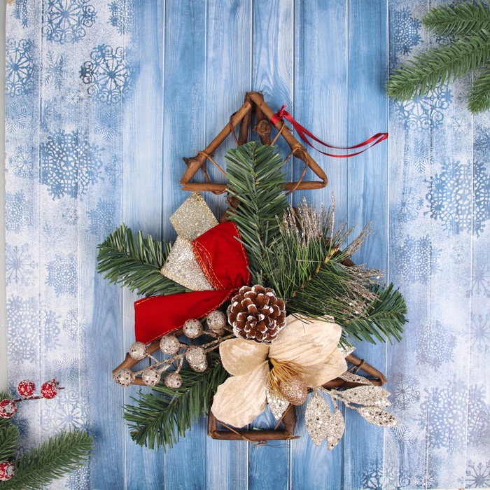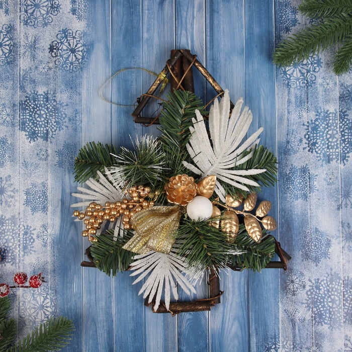 Это украшение превращает пространство в часть зимней истории, где важны не контрасты, а мягкий свет и форма. Золото и классические линии работают вместе, чтобы создать атмосферу спокойного торжества. Используйте его как самостоятельный элемент или как часть уже готового дизайна — одинаково хорошо передаёт дух Нового года и тепло семейных традиций.