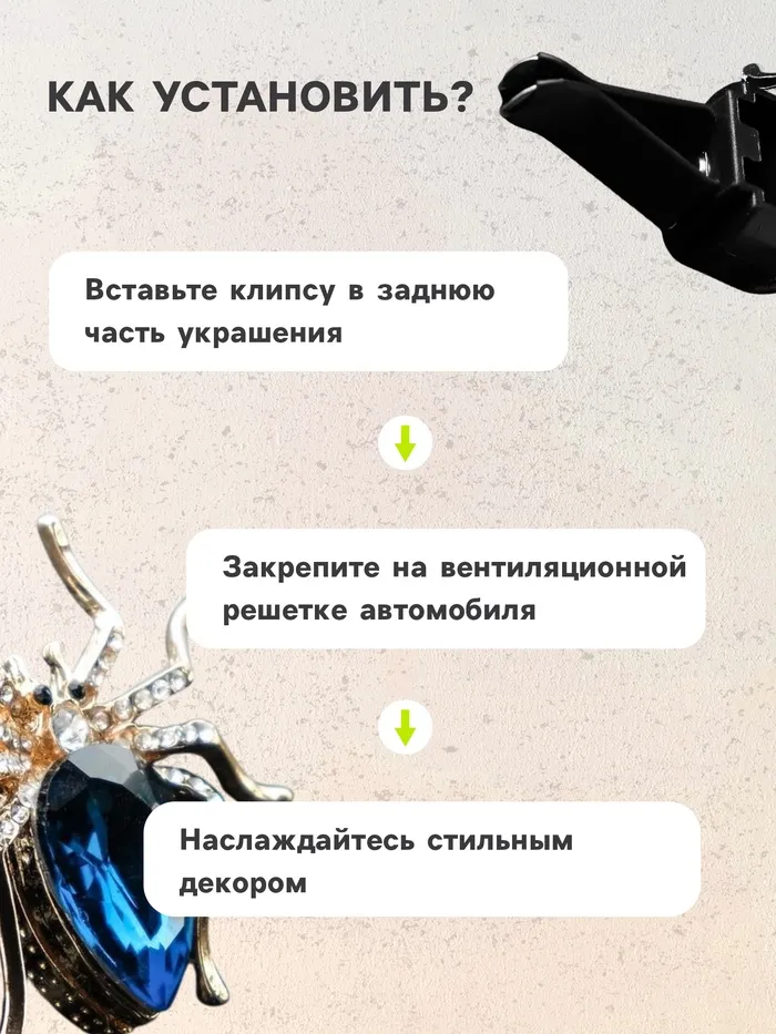 Украшение в дефлектор автомобиля, Паук, черный — Характеристики