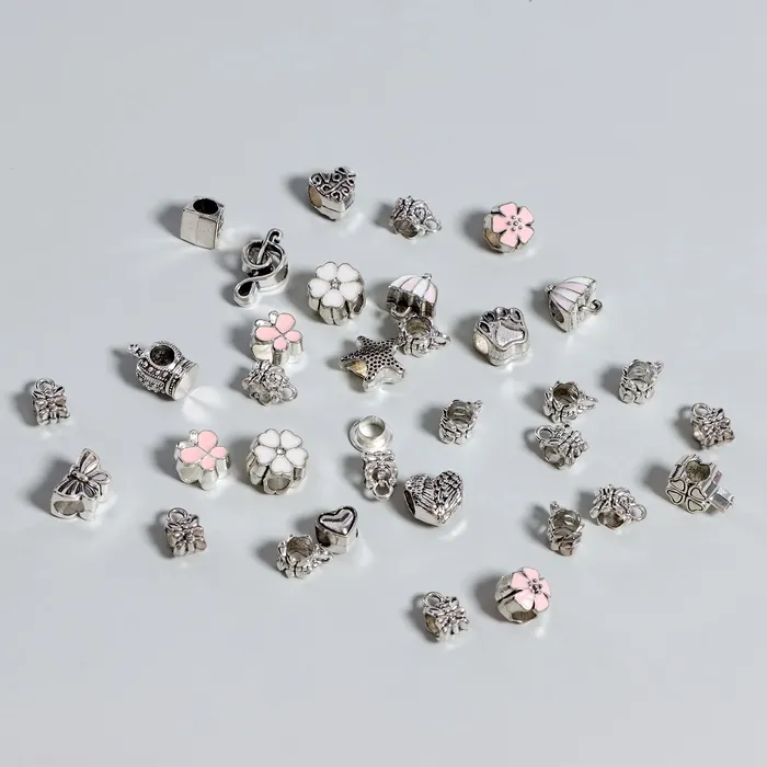 - Шармы — это декоративные элементы, которые нужны для украшения браслетов, бус, серёжек и других аксессуаров. В набор входит множество различных шармов, из которых вы сможете создать свой уникальный дизайн.