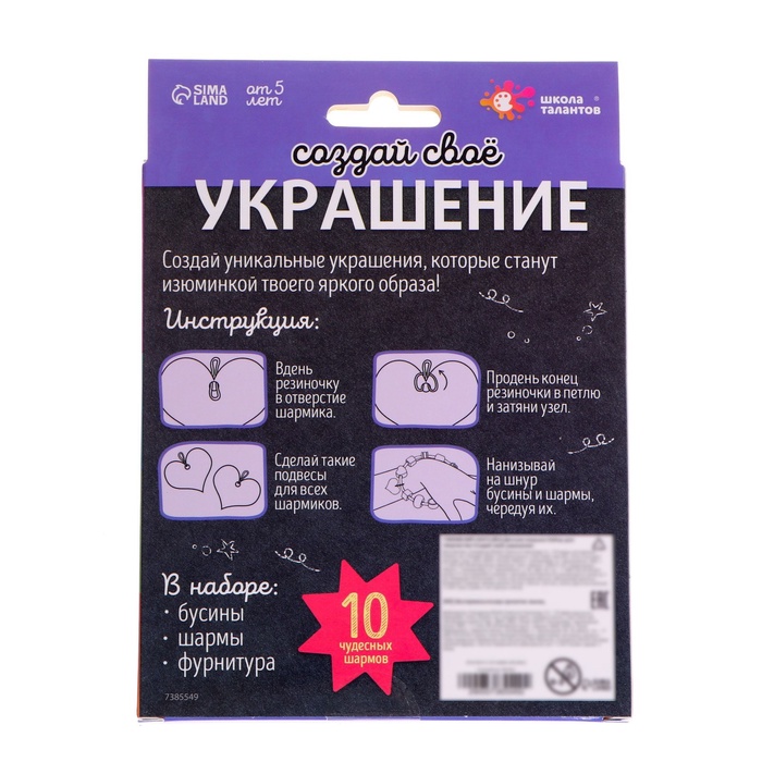 В наборе: 10 шармов, бусины, фурнитура.