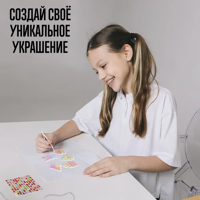 Набор для творчества «Алмазное украшение» понравится юной моднице, ведь она сможет сделать колье своими руками.