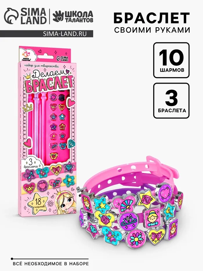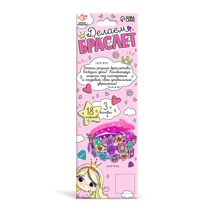 Украшения для девочек своими руками «Создай браслет с шармами. Принцесса», набор бусин для творчества — Характеристики
