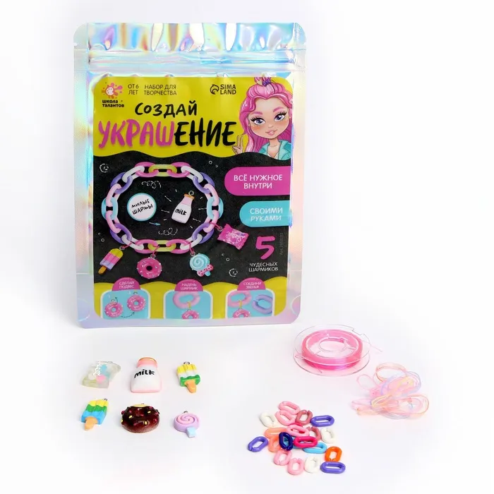 Набор для творчества «Создай украшение» — это увлекательный набор для юных модниц, который позволит создать неповторимые браслеты и выразить свою индивидуальность. С помощью этого набора каждая девочка сможет стать настоящим дизайнером и создать свой собственный стильный аксессуар.