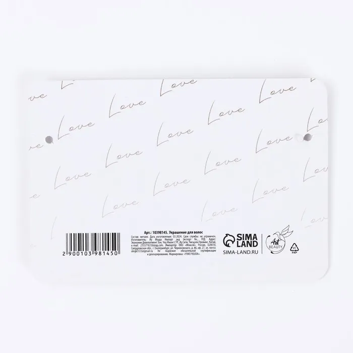 Украшения для волос на невидимках LOVE, 17 см — Характеристики