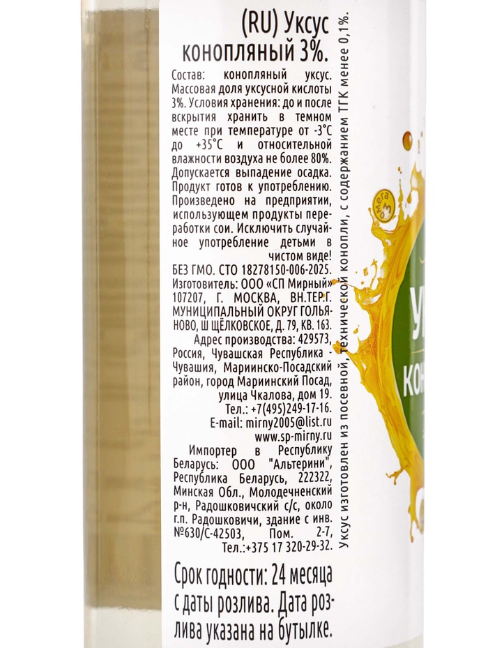 Лёгкая кислинка с ореховыми нотами! Конопляный уксус — это натуральный уксус с мягким вкусом и ароматом. Продукт подходит для заправки салатов, маринования овощей и создания соусов.