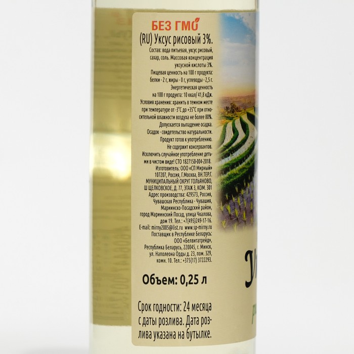 Производится на основе концентрата рисового уксуса, имеет мягко-кислый вкус с сахарной нотой, цвет от соломенно-жёлтого до янтарного.