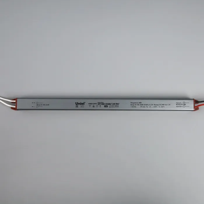 Ультратонкий блок питания для светодиодных лент и модулей Uniel, 36 Вт, 24 В, IP67 — Характеристики