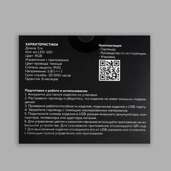 Примечание: Длина гирлянды указана без учета длины шнура питания — измеряется от первого до последнего светодиода, не включая провод.