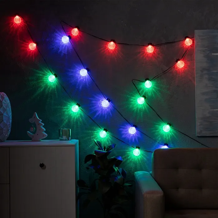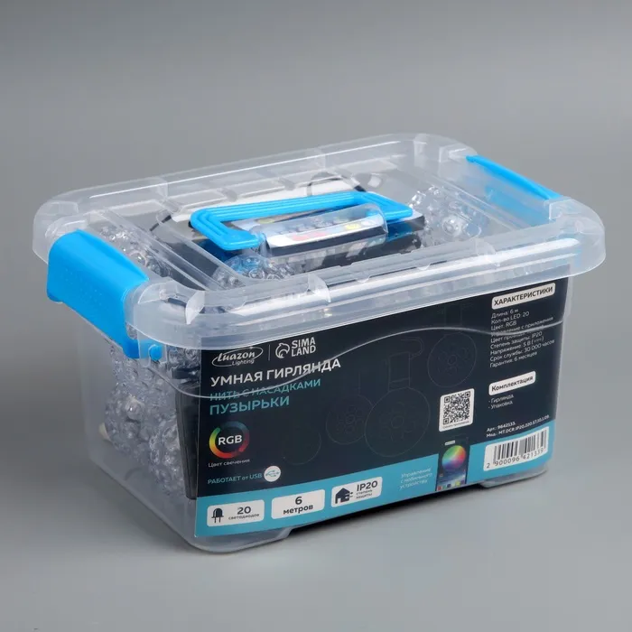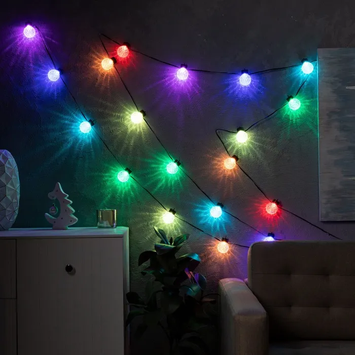 Умная гирлянда «Нить» 6 м с насадками «Пузырьки», IP20, тёмная нить, 20 LED, свечение RGB, USB — Характеристики