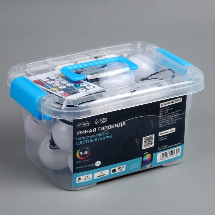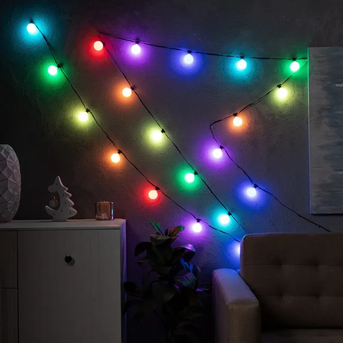 Умная гирлянда «Нить» 6 м с насадками «Шарики», IP20, тёмная нить, 20 LED, свечение RGB, USB — Характеристики