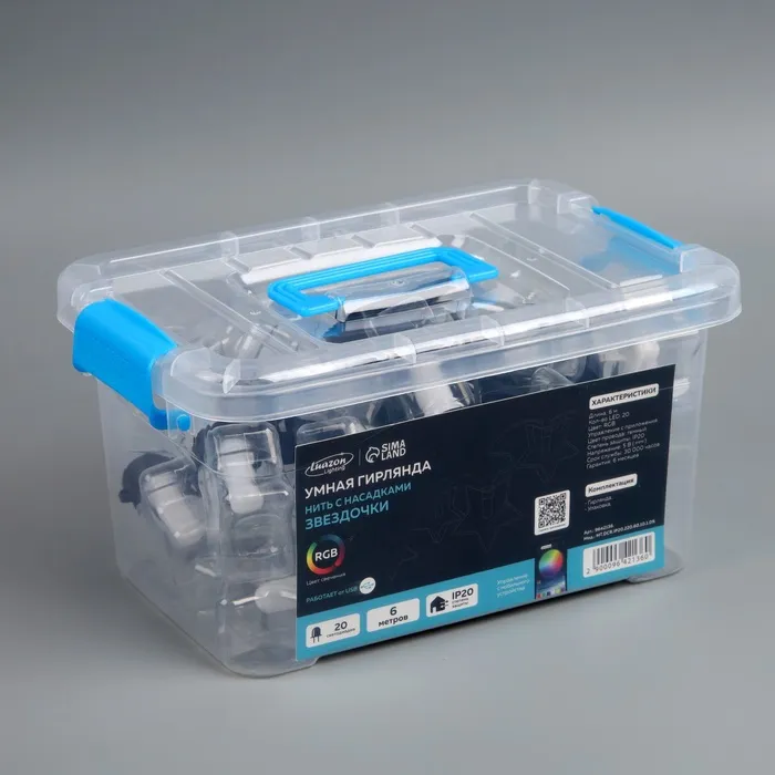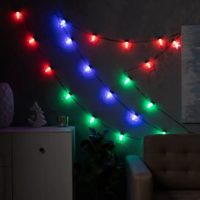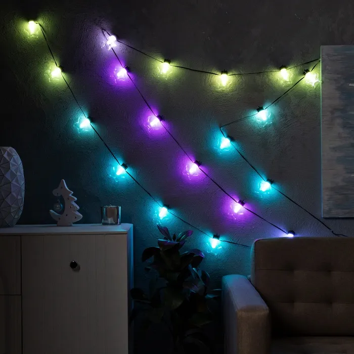 Умная гирлянда «Нить» 6 м с насадками «Звёздочки», IP20, тёмная нить, 20 LED, свечение RGB, USB — Характеристики