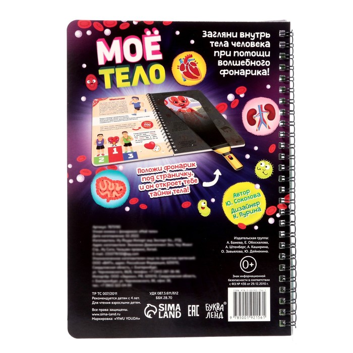 Умная книжка с фонариком «Моё тело». Свети и изучай, 30 стр. — Характеристики