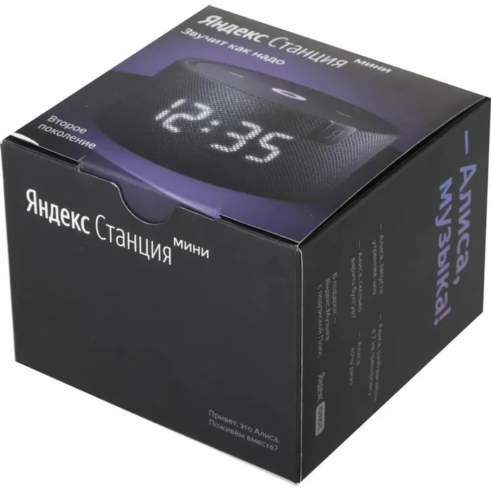 Умная колонка "Новая Яндекс Станция Мини" 2-ого (второго) поколения оснащена LED-дисплеем на передней стороне. Он показывает время, таймер и погоду.