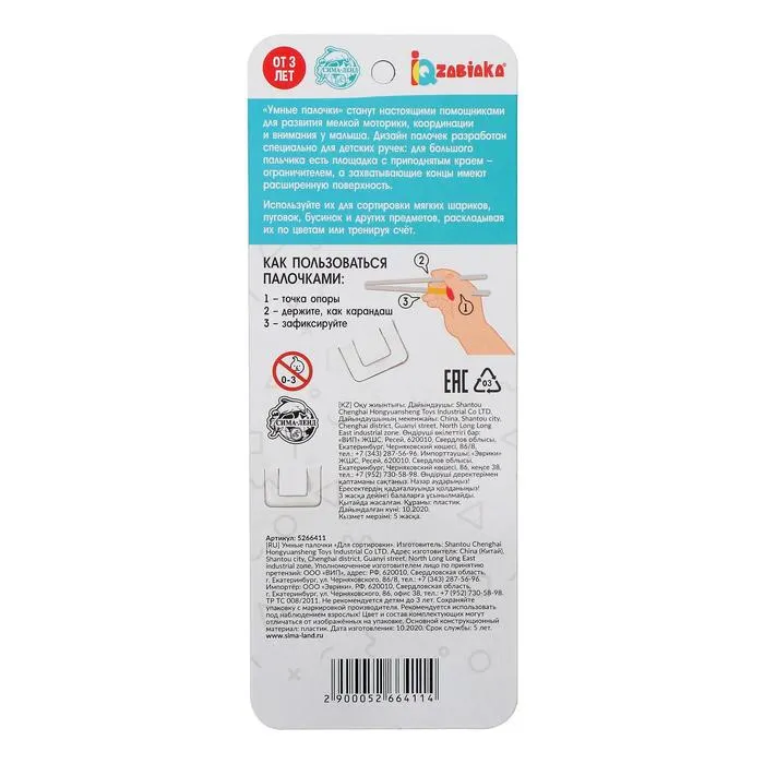 Умные палочки способствуют развитию мелкой моторики, ловкости и внимания. Занятия подготавливают руку малыша к рисованию, письму и развивают усидчивость. Дизайн палочек разработан для детских ручек: для большого пальчика есть площадка с приподнятым краем-ограничителем, а захватывающие концы имеют расширенную поверхность.