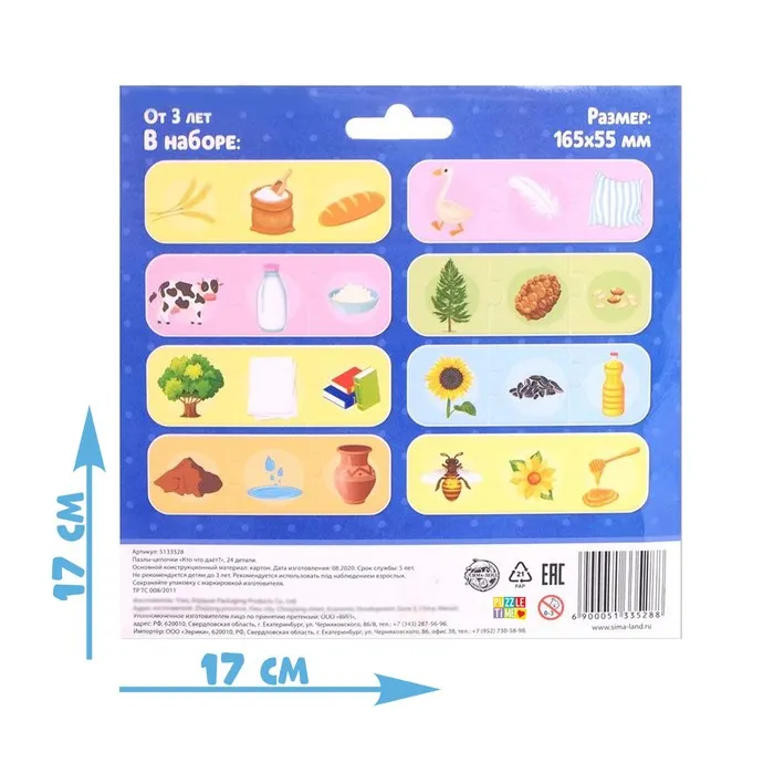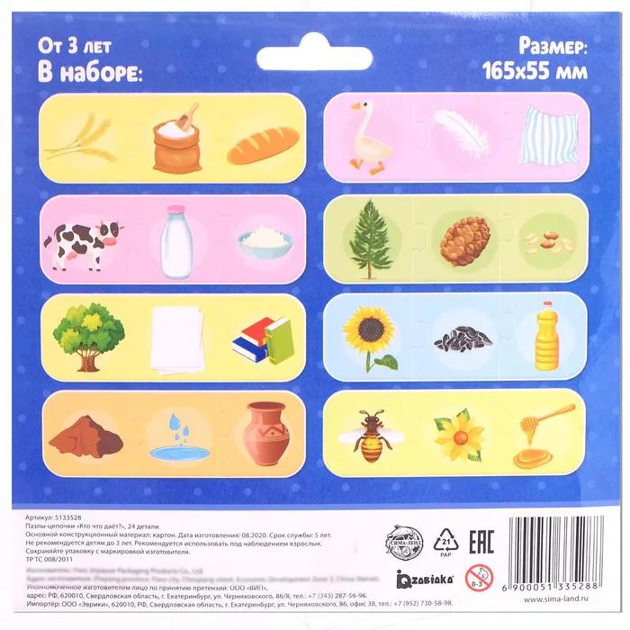 Умные пазлы - цепочки «Кто что даёт?», 8 цепочек, 24 детали — Характеристики