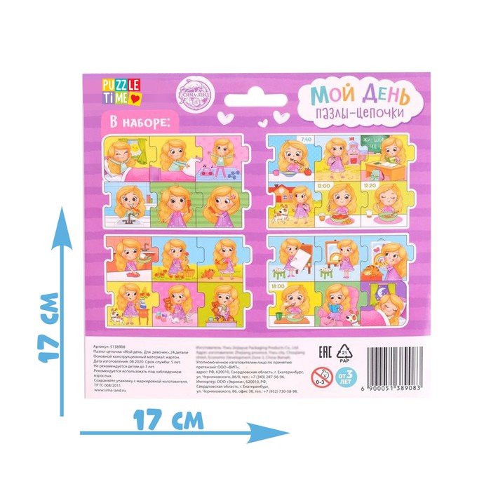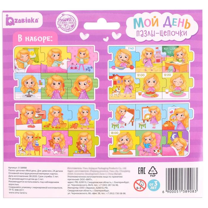 Умные пазлы - цепочки «Мой день. Для девочек», 24 детали — Характеристики