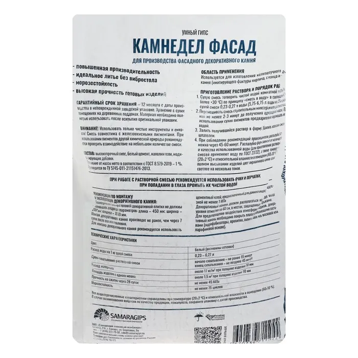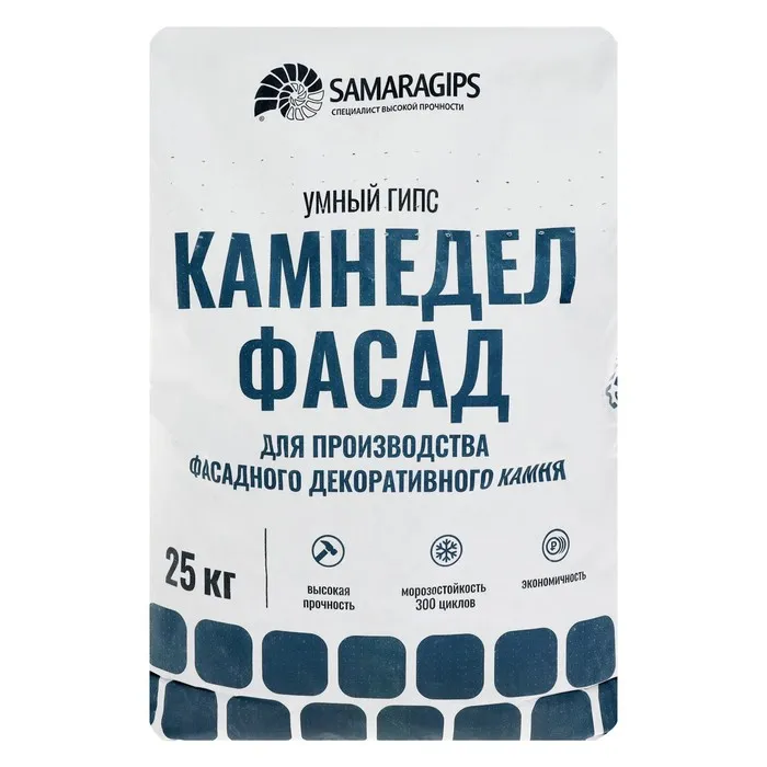 УМНЫЙ ГИПС КАМНЕДЕЛ ФАСАД SAMARAGIPS, ДЛЯ ПРОИЗВОДСТВА ДЕКОРАТИВНОГО КАМНЯ, 25 кг