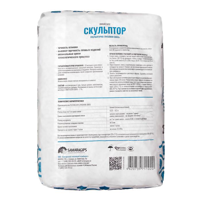 Умный гипс SAMARAGIPS, 25 кг, скульптурно-литьевая смесь для 3D литья — Характеристики