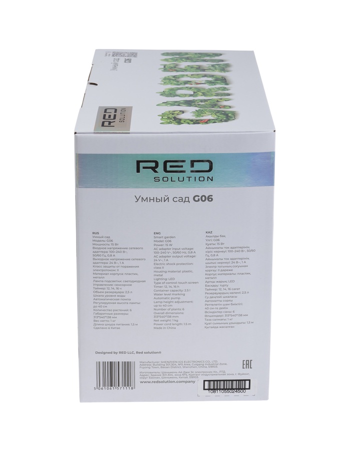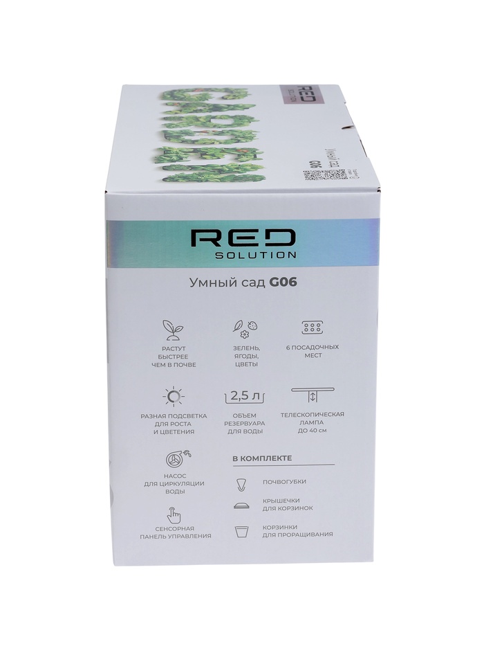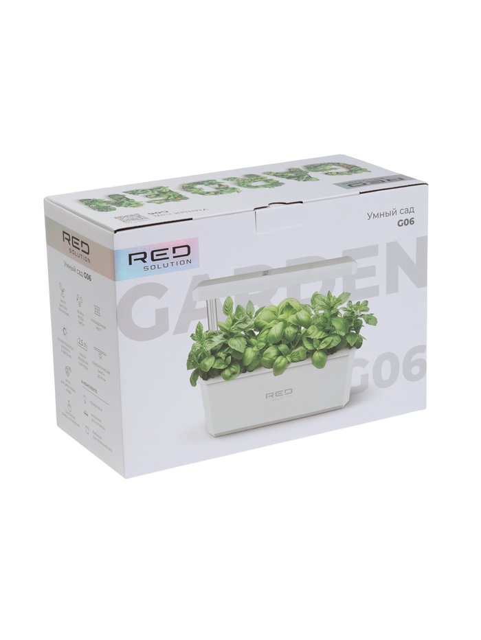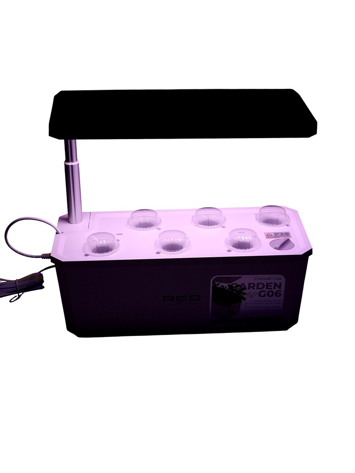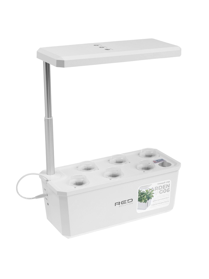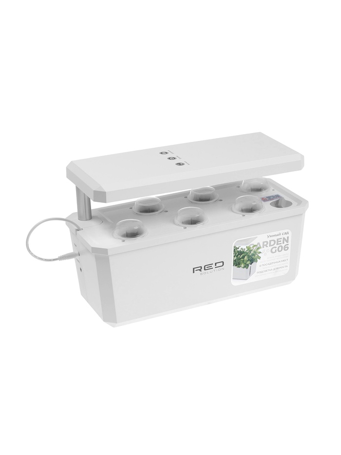 Умный сад RED SOLUTION G06, на 6 растений, 15 Вт, 2.5 л, до 40 см, сенсорное управление, белый — Характеристики