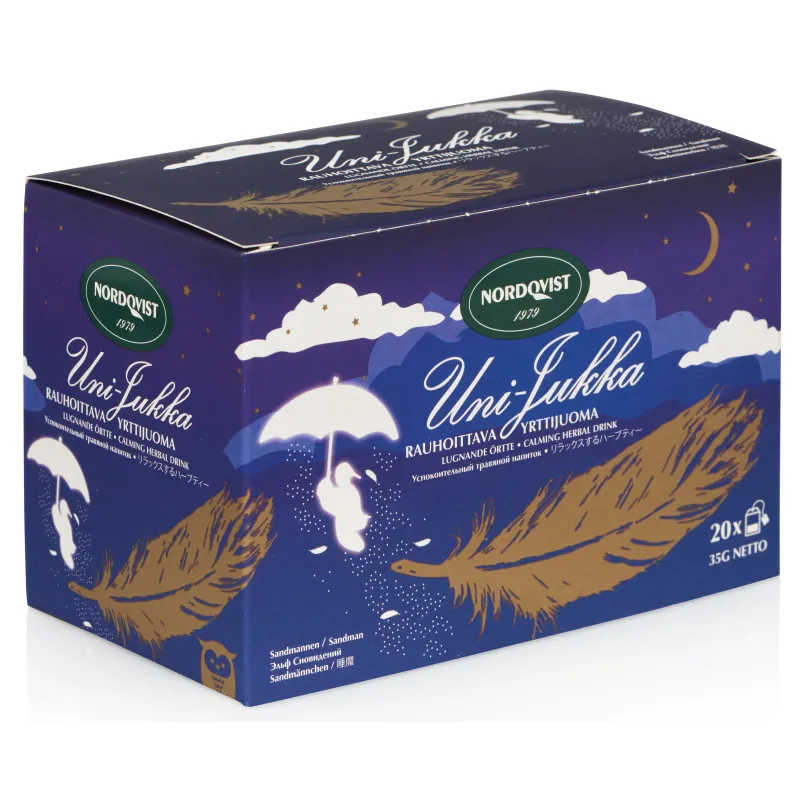 Uni-Jukka - это успокаивающий травяной напиток, который идеально подходит для употребления перед сном. В этом травяном чае мягко ощущаются ароматы ромашки, ванили и алоэ вера.
