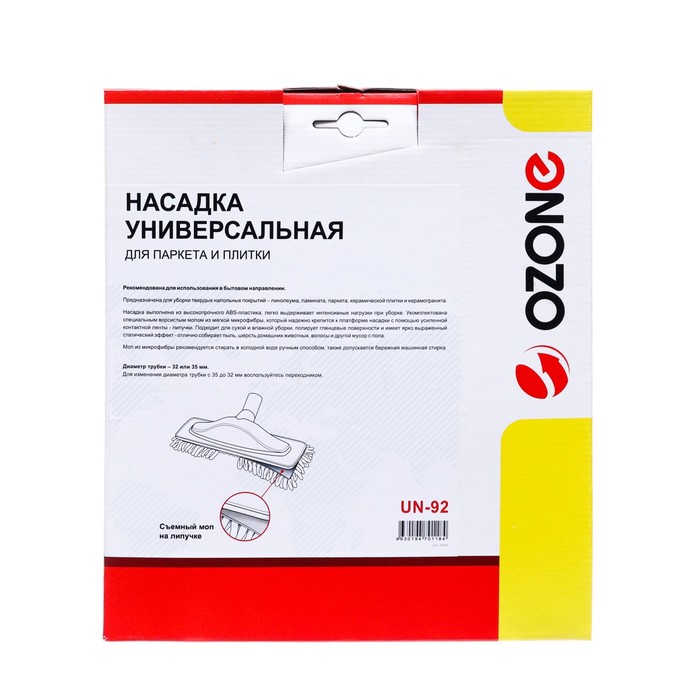 Универсальная насадка для пылесоса UN-92 Ozone - это идеальное решение для уборки паркета и плитки. Она оснащена специальной микрофиброй, которая эффективно удаляет грязь и пыль, придавая поверхностям блеск и чистоту. Насадка легко крепится к трубке, обеспечивая удобство и простоту использования. С этой насадкой уборка станет быстрее и эффективнее, а результат будет радовать вас своей безупречностью.