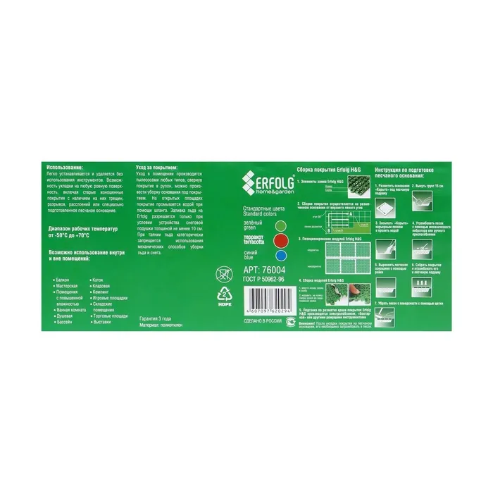 ERFOLG H&G — это пластиковое покрытие, отличающееся безопасностью, доступностью и универсальностью применения.