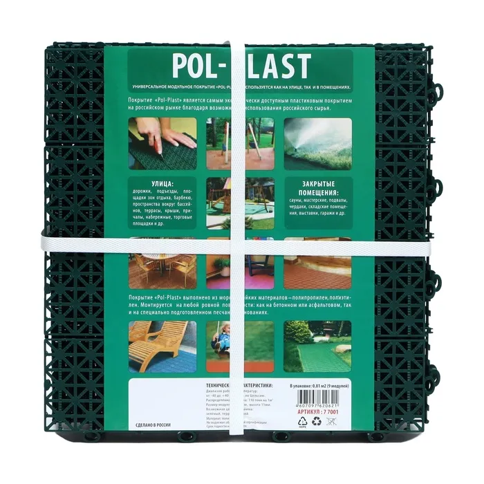 Покрытие PolPlast идеально подойдёт для любой зоны ваших владений и в доме, и под открытым небом. С ним вам не придётся ломать голову, что положить на пол в прихожей, а что — на балконе, чем вымостить дорожку или площадку для барбекю.