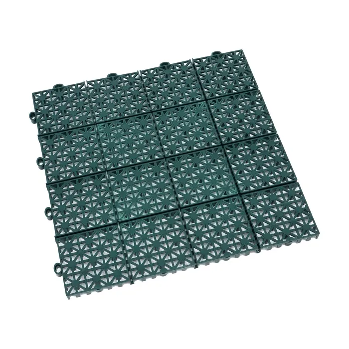 Это покрытие отлично переносит морозы, устойчиво к воздействию окружающей среды. Так что за долговечность вы можете быть спокойны. Никаких особых подготовительных работ для укладки проводить не нужно. Вы можете уложить его на траву или даже на старое покрытие. Главное, чтобы поверхность была ровной.