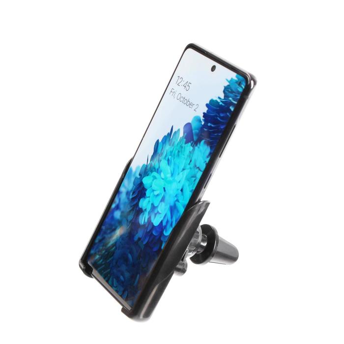 - Надёжная фиксация смартфона: боковые зажимы прочно удерживают устройство, предотвращая его выпадение даже при резких поворотах или кочках;