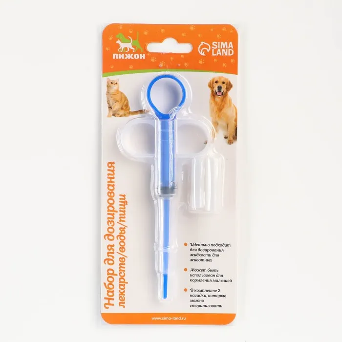 Интродьюсер лекарственных препоратов. Таблеткодаватель предназначен для безопасного и быстрого введения лекарственного препарата (включая твердые и жидкие формы) кошкам, собакам, грызунам, птицам. Мягкий наконечник не травмирует ротовую полость питомца. Насадка имеет прорези, в которые вставляется лекарство. Установите таблетку, капсулу или наберите лекарство в шприц. Откройте рот питомцу, поместите наконечник таблеткодавателя на кончик языка животного, надавите на поршень и вытолкнете лекарство. Выньте инструмент, закройте рот животному, чуть приподняв ему голову, стимулируя сглатывание препарата легким поглаживанием по горлу.