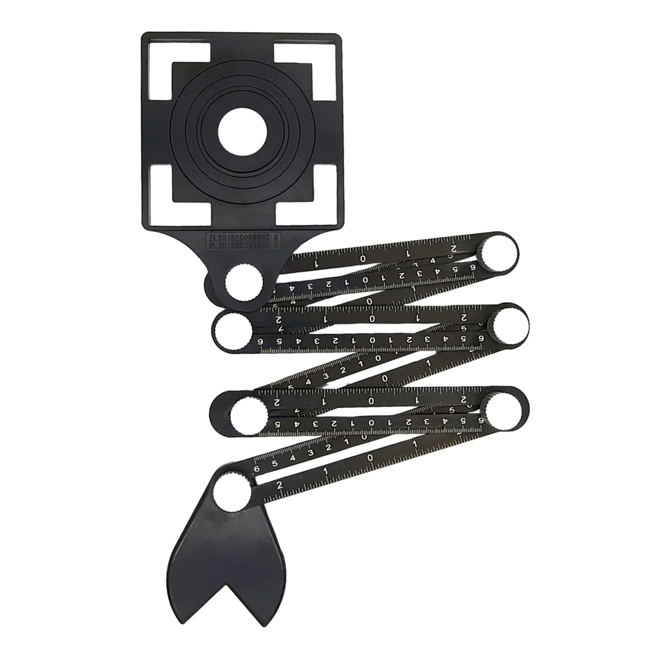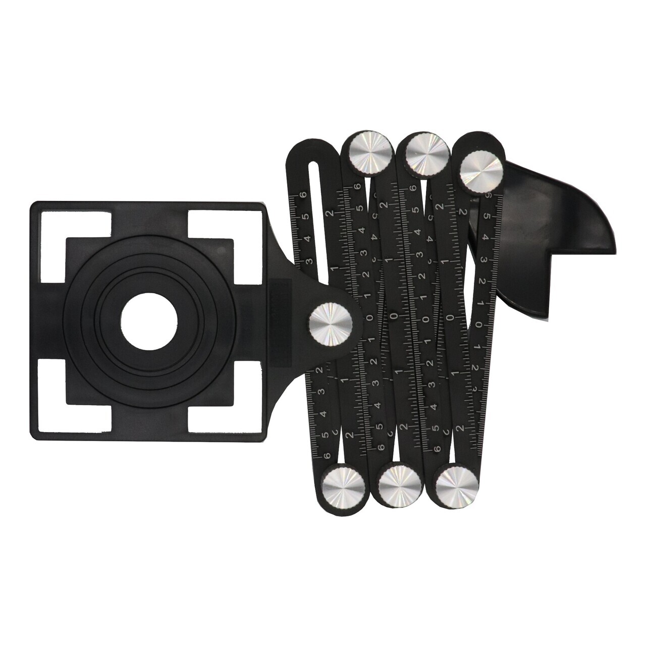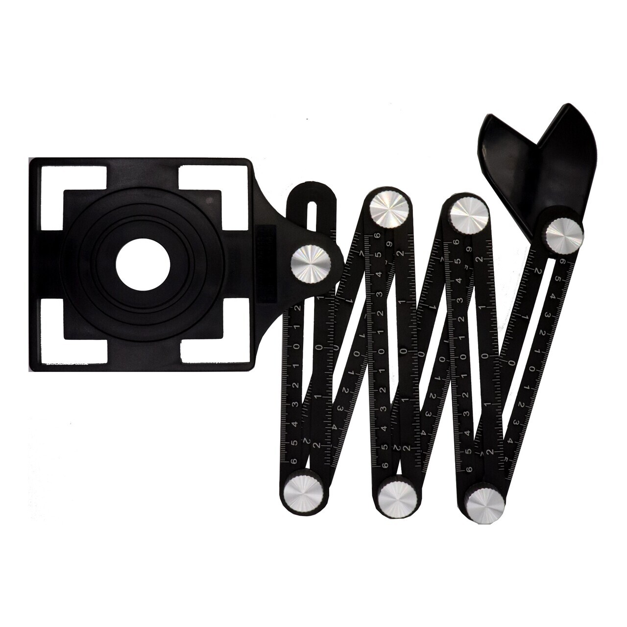 Изготовлен из высококачественных материалов, этот шаблон включает 6 колен и 1 трафарет, что делает его универсальным инструментом для любого типа плитки. Его угловой фиксатор гарантирует стабильность и точность при разметке.
