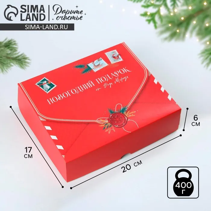 Упаковка для кондитерских изделий новогодняя «Подарок от Деда Мороза», 20 х 17 х 6 см — Характеристики