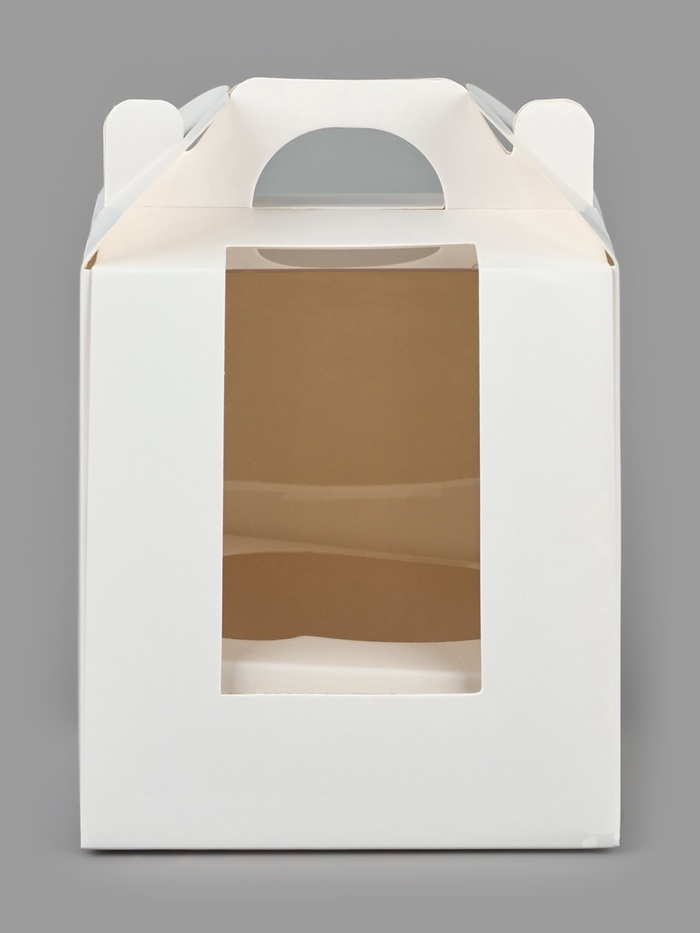 Кондитерская складная коробка для капкейков с окном на 4 шт., белая, 16×16×10 см