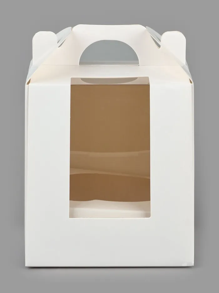 Коробка на 6 капкейков с окном, белая, 25×17×10 см