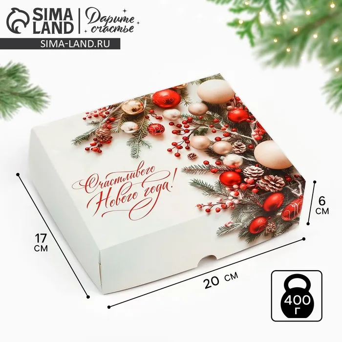 Упаковка для кондитерских изделий «Счастливого Нового года!», 20 х 17 х 6 см — Характеристики