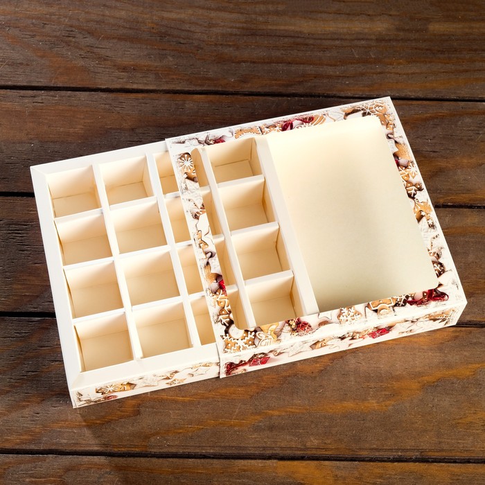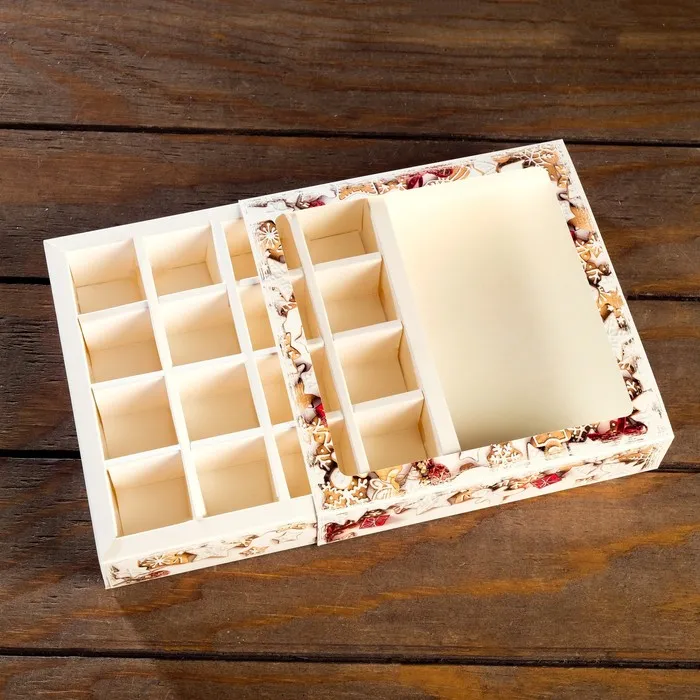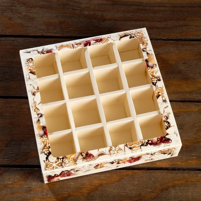 Коробка для конфет на 16 штук - идеальное упаковочное решение для ваших любимых сладостей. Элегантный и компактный дизайн этой коробки делает её идеальным подарком или дополнением к любому особенному моменту. Вмещает 16 вкусных конфет, предлагая их вам в стильной упаковке, готовой к подарку.