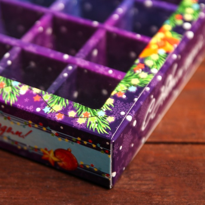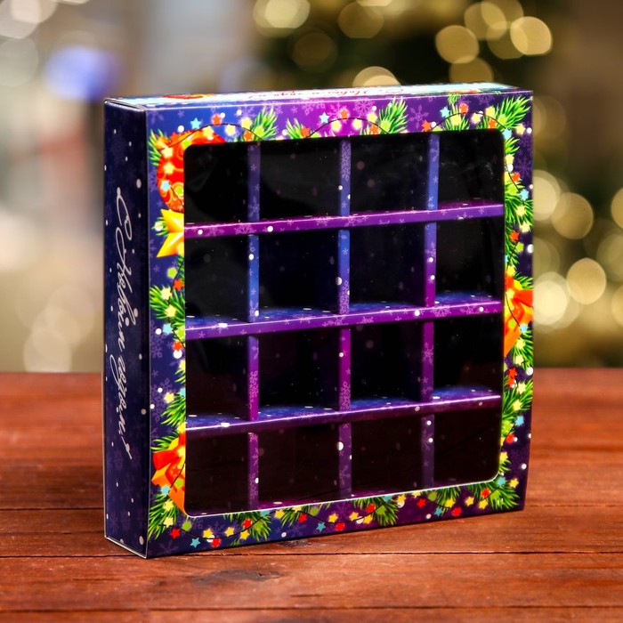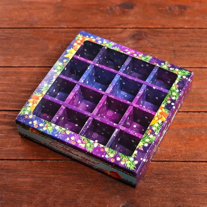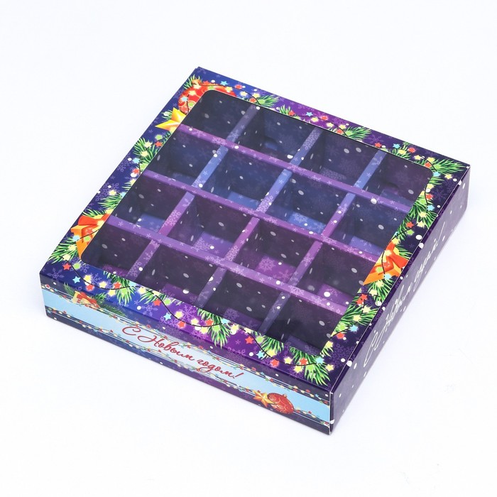 Упаковка для конфет 16 шт. «Яркий Новый Год», 17.7×17.7×3.8 см — Характеристики
